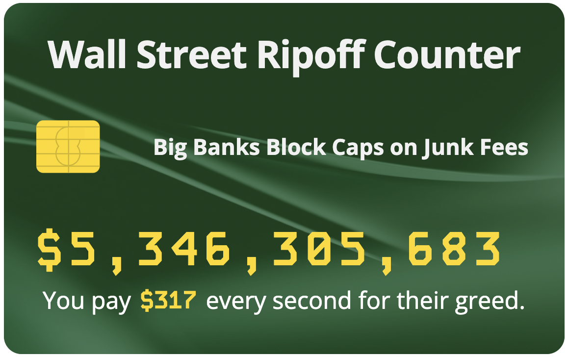 WASHINGTON, D.C. – A cap on junk fees could have saved consumers billions. Now, opposition from big Wall Street banks is costing consumers $317 each and every second.